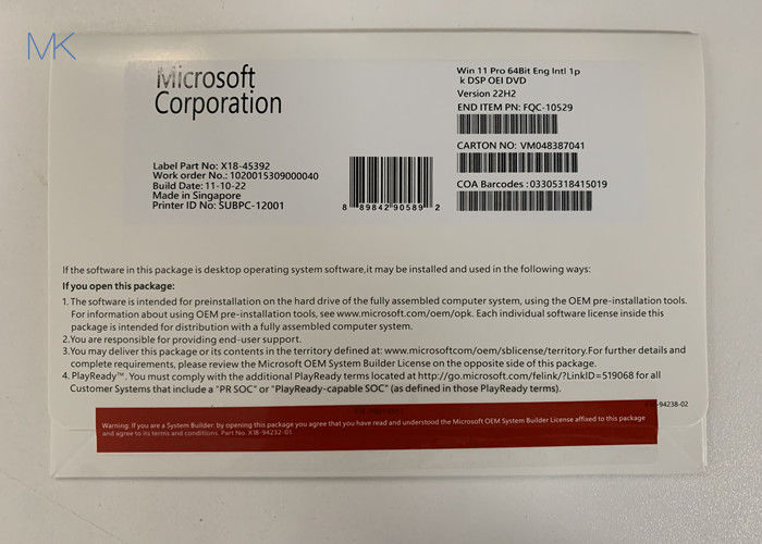 Оws de Wind del constructor de sistema del OEM de Microsoft 11 ingleses 64-bit profesionales 22H2 del DVD del OEM OEI